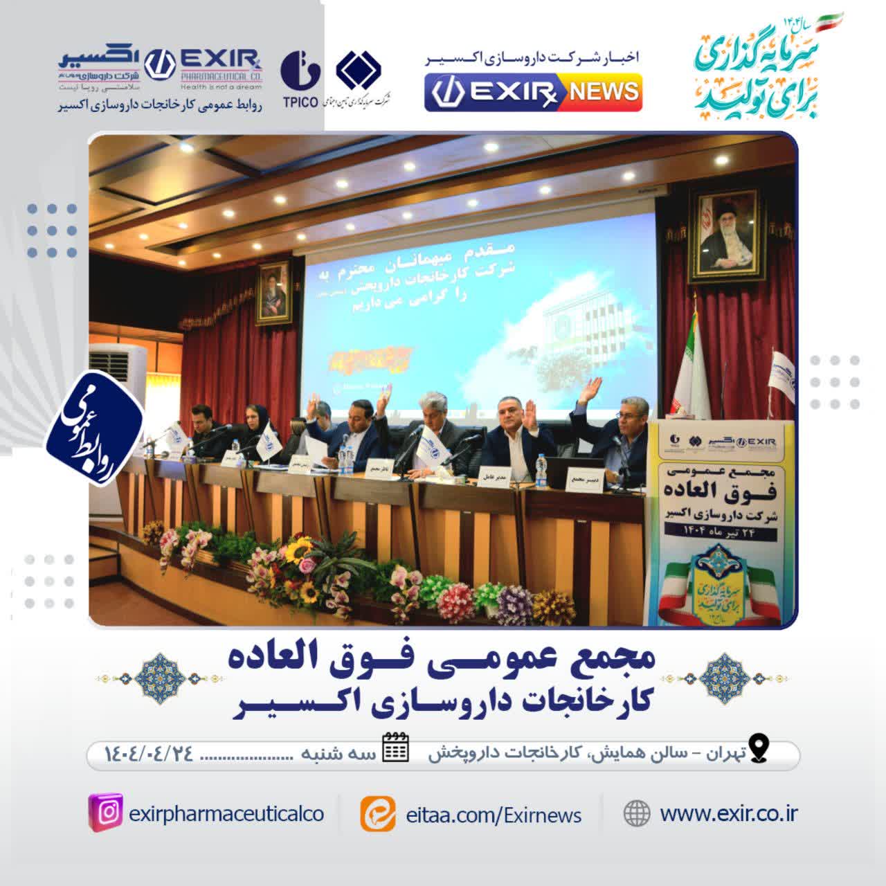 تصویب افزایش سرمایه از ۲٫۲۵۰٫۰۰۰۰ به ۱۱٫۳۶۷٫۰۰۰ میلیون ریال در مجمع عمومی فوق‌العاده کارخانجات داروسازی اکسیر ✍ به گزارش روابط عمومی کارخانجات داروسازی اکسیر مجمع عمومی فوق‌العاده شرکت داروسازی اکسیر روز سه شنبه ۲۴ تیر ماه رأس ساعت ۰۸:۰۰ صبح با حضور ۸۱/۱۶ درصد از سهامداران حقیقی و حقوقی که در محل سالن اجتماعات کارخانجات داروپخش برگزار شد. در این جلسه، آقای دکتر سید محمد خوانساری به عنوان رئیس مجمع، دکتر عبداله پور مدیر عامل کارخانجات داروسازی،آقای بخشی به نمایندگی از سازمان بورس و اوراق بهادار، و سرکار خانم ارس خان به عنوان نماینده سازمان حسابرسی ،آقایان محمد حسین ملک و مرتضی سبحانی نیا به عنوان ناظران مجمع و آقای محمد پرتوی شایان به عنوان منشی مجمع حضور داشتند. در ابتدای جلسه و پس از رسمیت یافتن آن، هیئت‌رئیسه مجمع تشکیل و دستور جلسه توسط رئیس مجمع قرائت شد. دستور جلسه شامل موارد زیر بود: بررسی و تصویب افزایش سرمایه از محل سود انباشته، مطالبات حال شده و آورده نقدی و تجدید ارزیابی دارایی ها از۲٫۲۵۰٫۰۰۰۰ به ۱۱٫۳۶۷٫۰۰۰ میلیون ریال بررسی سایر موارد در صلاحیت مجمع عمومی فوق‌العاده بنا بر پیشنهاد هیئت‌مدیره در ادامه جلسه، گزارش توجیهی افزایش سرمایه شرکت توسط آقای محمد پرتوی شایان عضو موظف هیات مدیره و معاونت مالی در جلسه ارائه گردید. نکته قابل توجه اینکه این مجمع به‌منظور تسهیل مشارکت و شفاف‌سازی، به‌صورت برخط از طریق وب‌سایت رسمی شرکت پخش زنده شد تا سهامداران محترمی که امکان حضور فیزیکی نداشتند نیز بتوانند به‌صورت لحظه‌ای در جریان روند برگزاری جلسه قرار گیرند. در پایان، تمامی موارد دستور جلسه با رأی اکثریت سهامداران به تصویب رسید و صورت‌جلسه نهایی مطابق با ضوابط قانونی تنظیم و امضا شد. ┄┄┅═✧❁💠❁✧═┅┄ ⚜Exir News⚜ 🌐 www.exir.co.ir ‌ 💠جهت اطلاع از اخبار خانواده بزرگ اکسیر به ما بپیوندید 👇👇👇 💠 eitaa.com/Exirnews