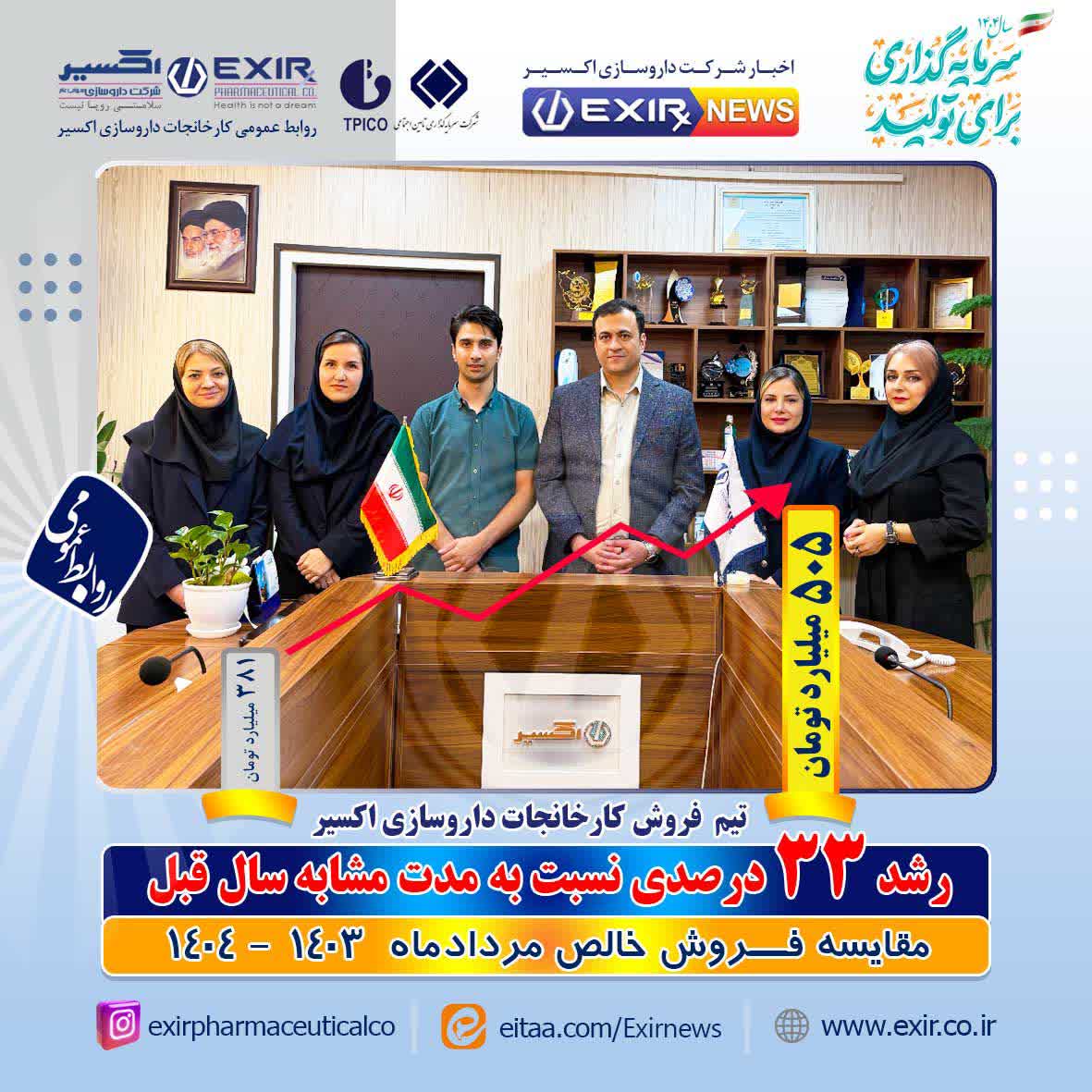رشد ۳۳ درصدی فروش خالص داروسازی اکسیر در مرداد ۱۴۰۴