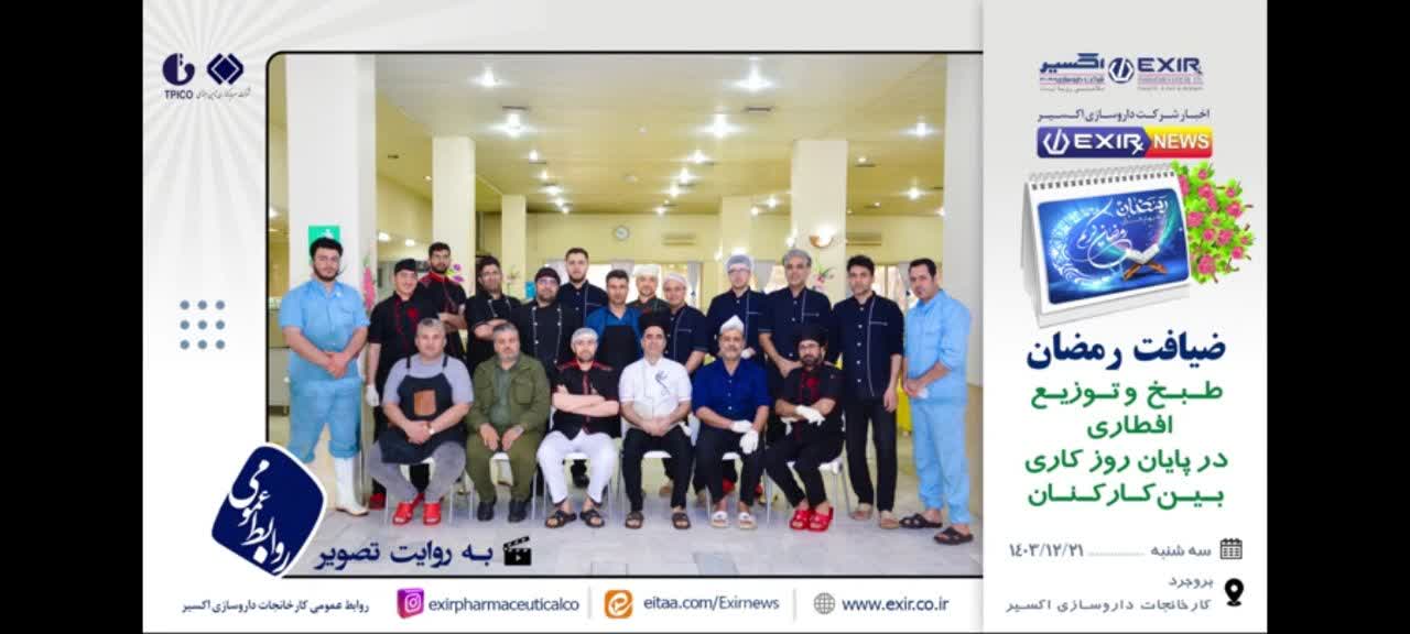 ضیافت رمضان رمضان فرصتی مغتنم برای تقویت روحیه همدلی و همبستگی در میان اعضای خانواده بزرگ اکسیر طبخ افطاری به مناسبت ماه مبارک رمضان و توزیع در پایان روز کاری بین کارکنان سه شنبه، ۲۱ اسفند ۱۴۰۳ ۱۰ رمضان ۱۴۴۶ روابط عمومی کارخانجات داروسازی اکسیر ┄┄┅═✧❁💠❁✧═┅┄ ⚜Exir News⚜ 🌐 www.exir.co.ir 💠جهت اطلاع از اخبار خانواده بزرگ اکسیر به ما بپیوندید 👇👇👇 💠 eitaa.com/Exirnews