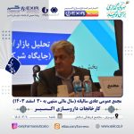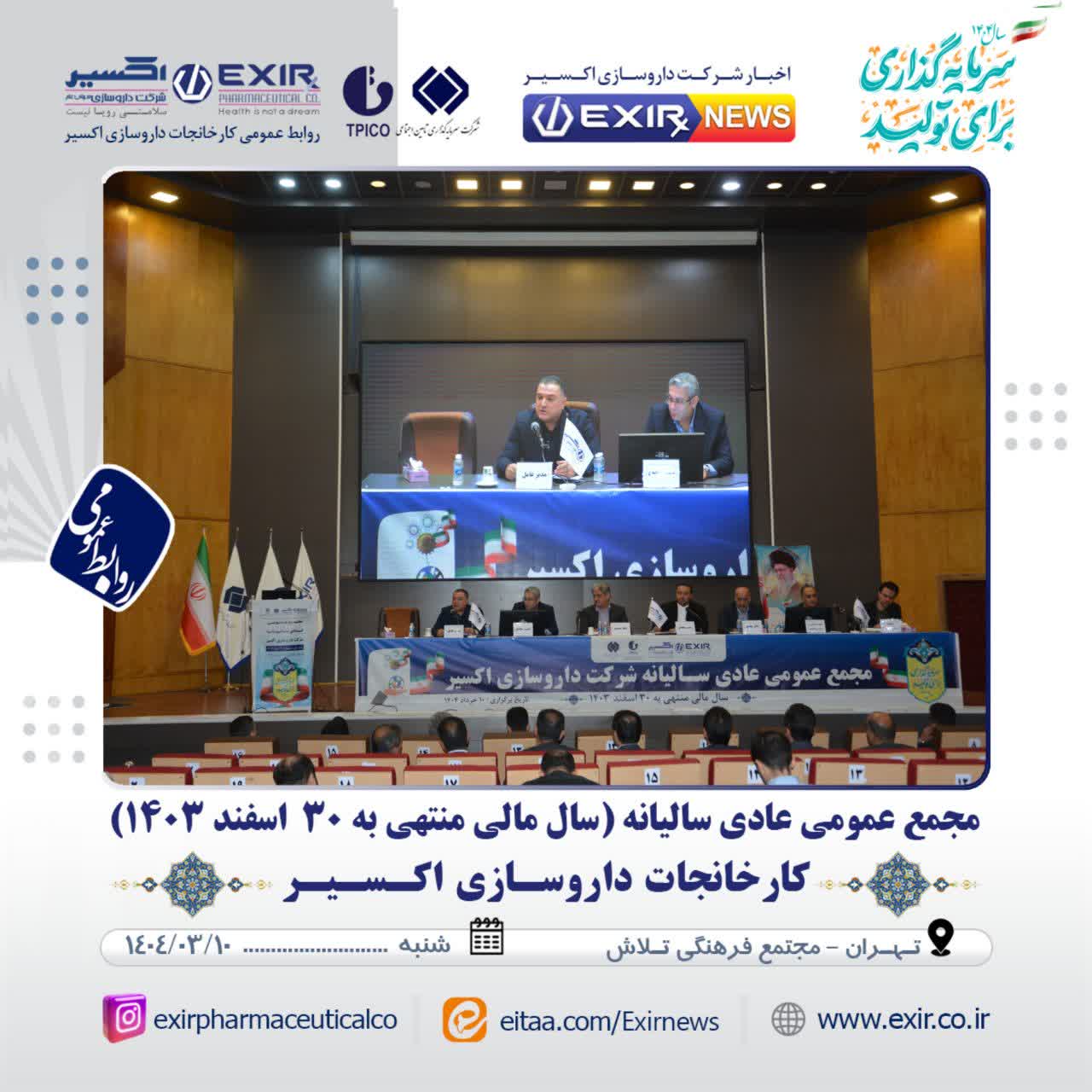 گزارش برگزاری مجمع عمومی سالیانه شرکت کارخانجات داروسازی اکسیر (دلر) تاریخ برگزاری: ۱۰ خرداد ماه ۱۴۰۴ محل برگزاری: تهران، مجتمع فرهنگی تلاش درصد حضور سهامداران: ۸۲.۹۹ درصد ✍️به گزارش روابط عمومی کارخانجات داروسازی اکسیر مجمع عمومی عادی سالیانه صاحبان سهام شرکت کارخانجات داروسازی اکسیر (نماد: دلر) برای سال مالی منتهی به ۳۰ اسفندماه ۱۴۰۳ با حضور اکثریت قریب به اتفاق سهامداران، نمایندگان سازمان بورس و اوراق بهادار، حسابرس و بازرس قانونی، در تاریخ ۱۰ خردادماه ۱۴۰۴ برگزار شد. ارائه گزارش عملکرد توسط مدیرعامل در آغاز جلسه، دکتر عاصم عبدالهپور، مدیرعامل شرکت، گزارشی مبسوط از عملکرد شرکت در سال مالی گذشته ارائه داد. وی با اشاره به جایگاه برجسته “اکسیر” در صنعت داروسازی کشور، اعلام کرد: «سال ۱۴۰۳ با وجود نوسانات ارزی، محدودیتهای بینالمللی در حوزه تأمین مواد اولیه و افزایش هزینههای تولید، سالی موفق برای شرکت کارخانجات داروسازی اکسیر بود. ما توانستیم با تکیه بر تولید دانشبنیان، افزایش راندمان خطوط تولید، و بهرهگیری از سرمایه انسانی متخصص، به رشد قابل توجهی در شاخصهای مالی و عملیاتی دست یابیم.» برخی از نکات کلیدی گزارش عملکرد مدیرعامل به شرح زیر بود: افزایش ۱۱ درصدی فروش خالص نسبت به سال مالی قبل اخذ مجوز تولید داروی جدید از سازمان غذا و دارو افزایش حجم صادرات کاهش هزینه های بهای تمامشده با بهینه سازی ساختار تأمین و فرمولاسیون های نوین تصویب صورتهای مالی و تقسیم سود در ادامه، گزارش حسابرس مستقل و بازرس قانونی قرائت شد و صورتهای مالی سال منتهی به ۳۰ اسفند ۱۴۰۳ به تصویب مجمع رسید. با پیشنهاد هیئتمدیره و تصویب سهامداران، مقرر شد مبلغ ۳۵۵۵ ریال سود نقدی به ازای هر سهم بین سهامداران توزیع شود. انتخاب بازرس قانونی و روزنامه رسمی در بخش انتخاب بازرس قانونی، سازمان حسابرسی کشور به عنوان بازرس اصلی برای سال مالی آتی انتخاب شدند. همچنین، روزنامه اطلاعات به عنوان روزنامههای کثیرالانتشار جهت درج آگهیهای رسمی شرکت تعیین شدند. سخن پایانی هیئترئیسه در پایان جلسه، هیئترئیسه مجمع با قدردانی از حمایتهای مستمر سهامداران و تلاشهای بیوقفه کارکنان شرکت، ابراز امیدواری کرد که سال پیشرو با تحقق برنامههای توسعهای، گامهای موثری در جهت ارتقاء جایگاه اکسیر در بازار داخلی و منطقهای برداشته شود. ┄┄┅═✧❁💠❁✧═┅┄ ⚜Exir News⚜ 🌐 www.exir.co.ir 💠جهت اطلاع از اخبار خانواده بزرگ اکسیر به ما بپیوندید 👇👇👇 💠 eitaa.com/Exirnews