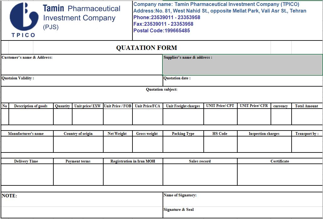 - Companies failing to comply with the above requirements will be excluded from both the acceptance of the price and participation in the tender and if the winner company fails to meet their obligations, the winner will be prohibited from participating in future tenders of Tamin Pharmaceutical Investment Company (TPICO) and its subsidiaries.